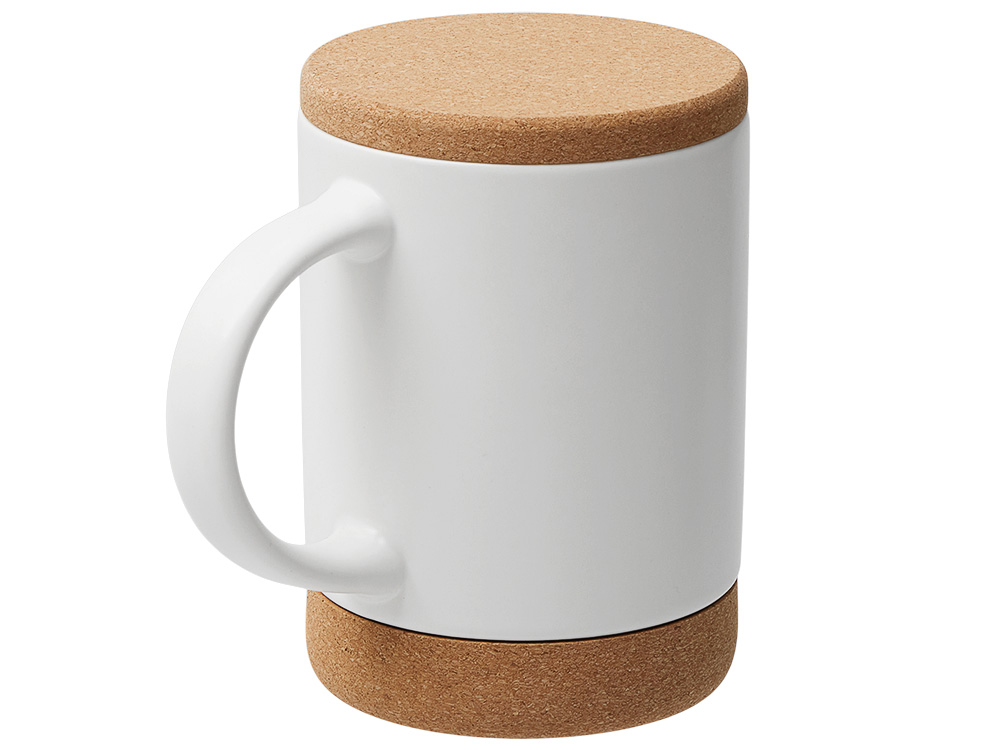 Кружка 450 мл с пробковым дном с крышкой Корк & Бон, белый с логотипом компании - отличный способ заявить вашу корпоративную идентичность.