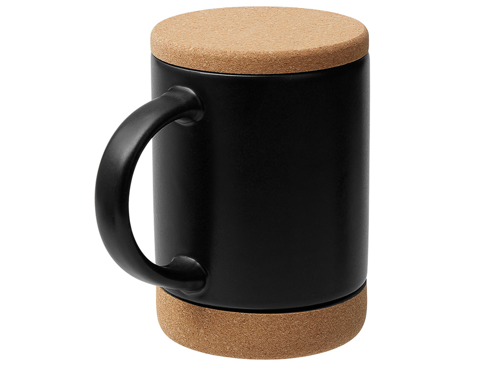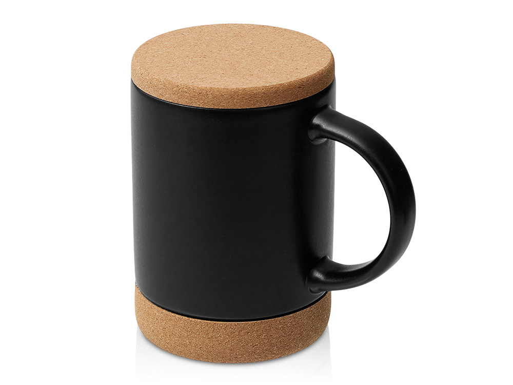 Компания «Эклектика BY» осуществляет нанесение логотипа на сувенирную продукцию: Кружка 450 мл с пробковым дном с крышкой Корк & Бон, черный. Арт. 462910