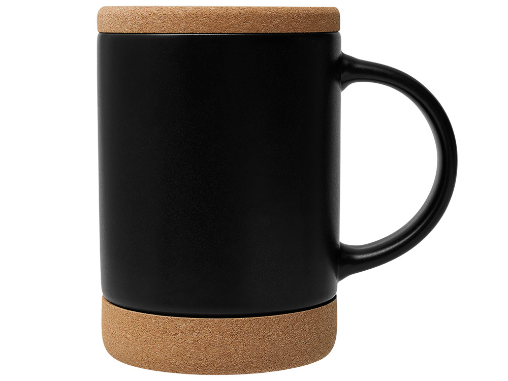 Кружка 450 мл с пробковым дном с крышкой Корк & Бон, черный с логотипом компании - отличный способ заявить вашу корпоративную идентичность.