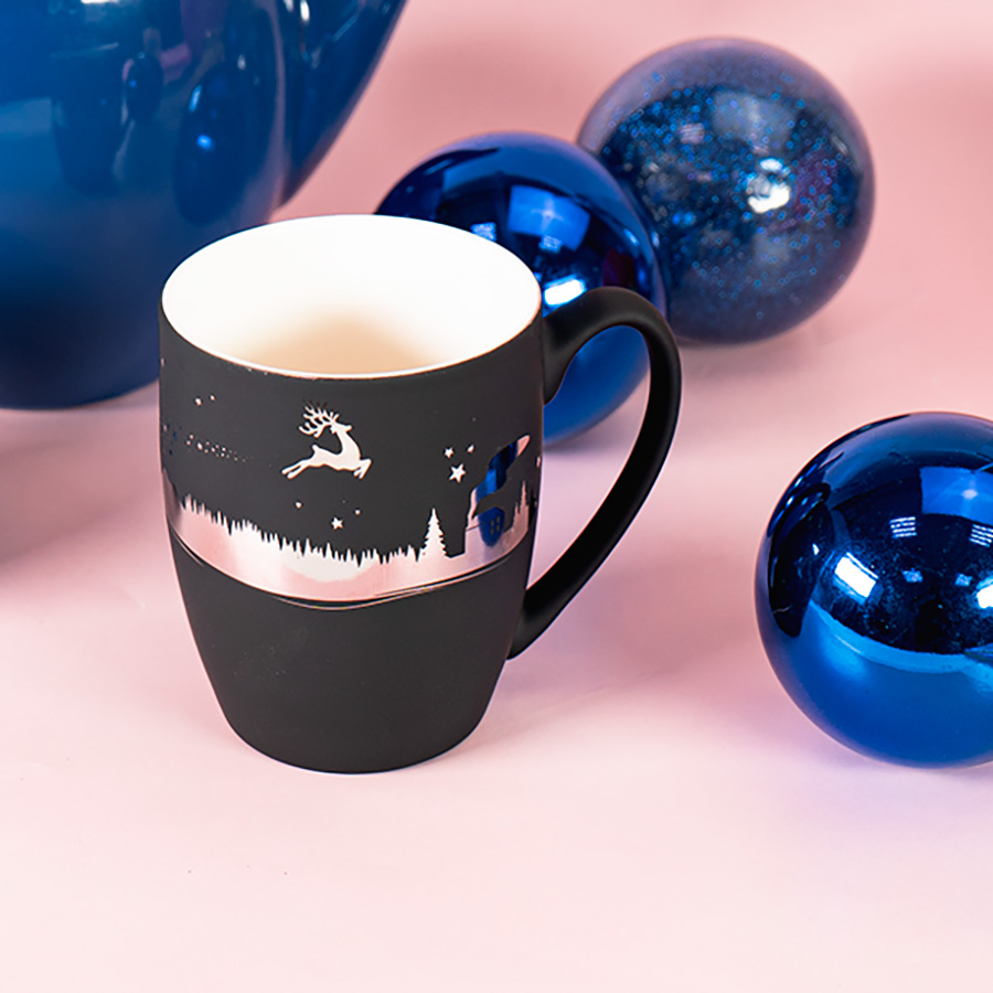 Кружка "Sweet" с серебряной окантовкой и зеркальной серебряной подложкой, покрытой прорезиненным покрытием. Фарфоровая кружка SWEET с мягким и тактильно приятным прорезиненным софт покрытием давно и прочно завоевала место на рынке бизнес-подарков. А с гравировкой она смотрится просто великолепно – когда снимается верхний слой покрытия, лого выглядит эффектно за счет зеркальной серебристой подложки.. Настоящее волшебство! Большая площадь поверхности позволяет нанести любую надпись, пожелание или цитату, так что не ограничивайтесь деловыми стандартами.
