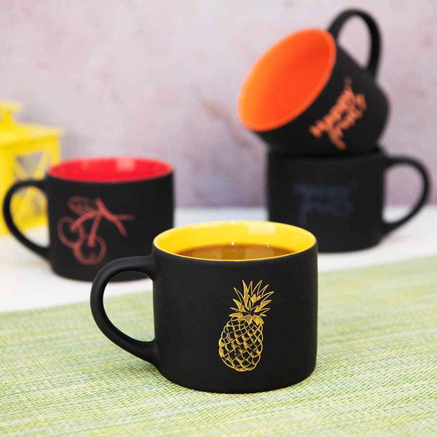 При гравировке подложка вскрывается в цвет внутренней части кружки
