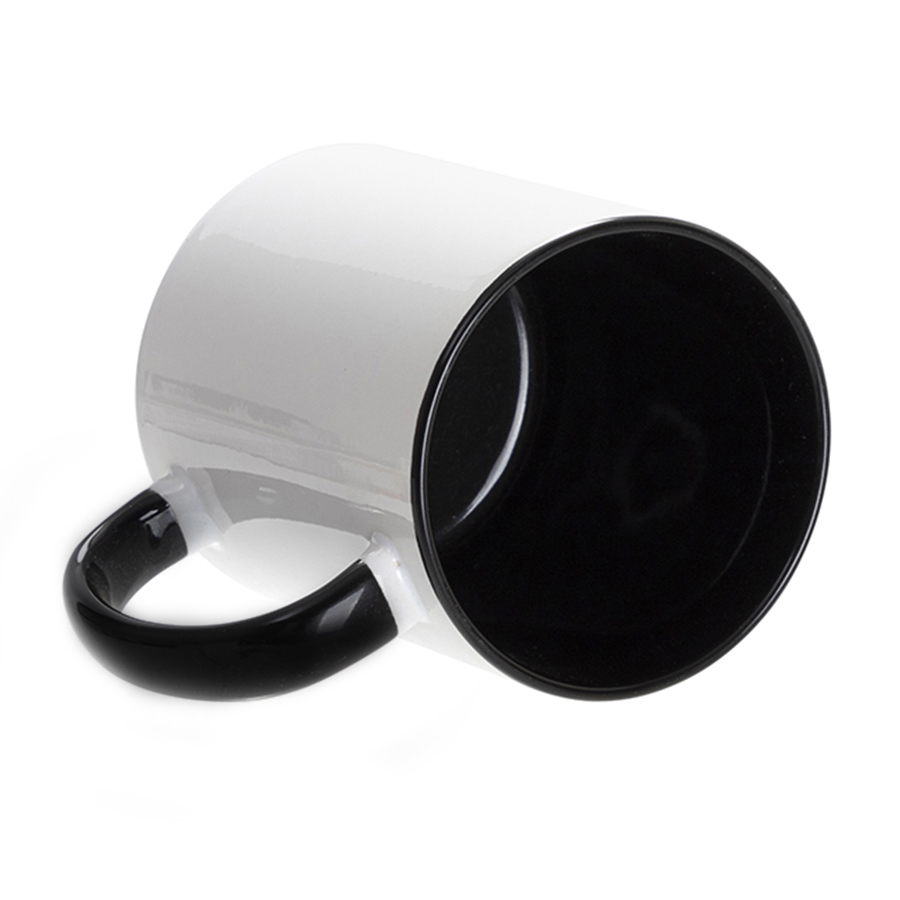 Кружка для сублимации, 330 мл, d=82 мм, стандарт А, белая, черная внутри, черная ручка