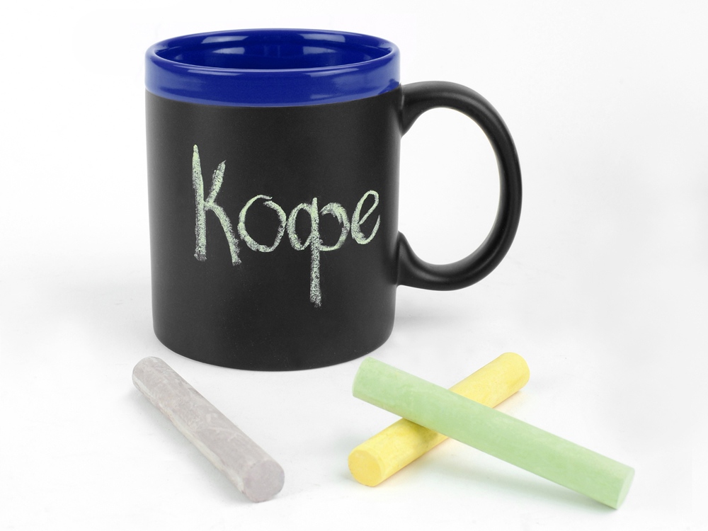 Главная ->Корпоративные подарки и рекламные сувениры на складе -> Кружки c логотипом -> Кружки -> Кружка с покрытием для рисования мелом Да Винчи, черный/синий