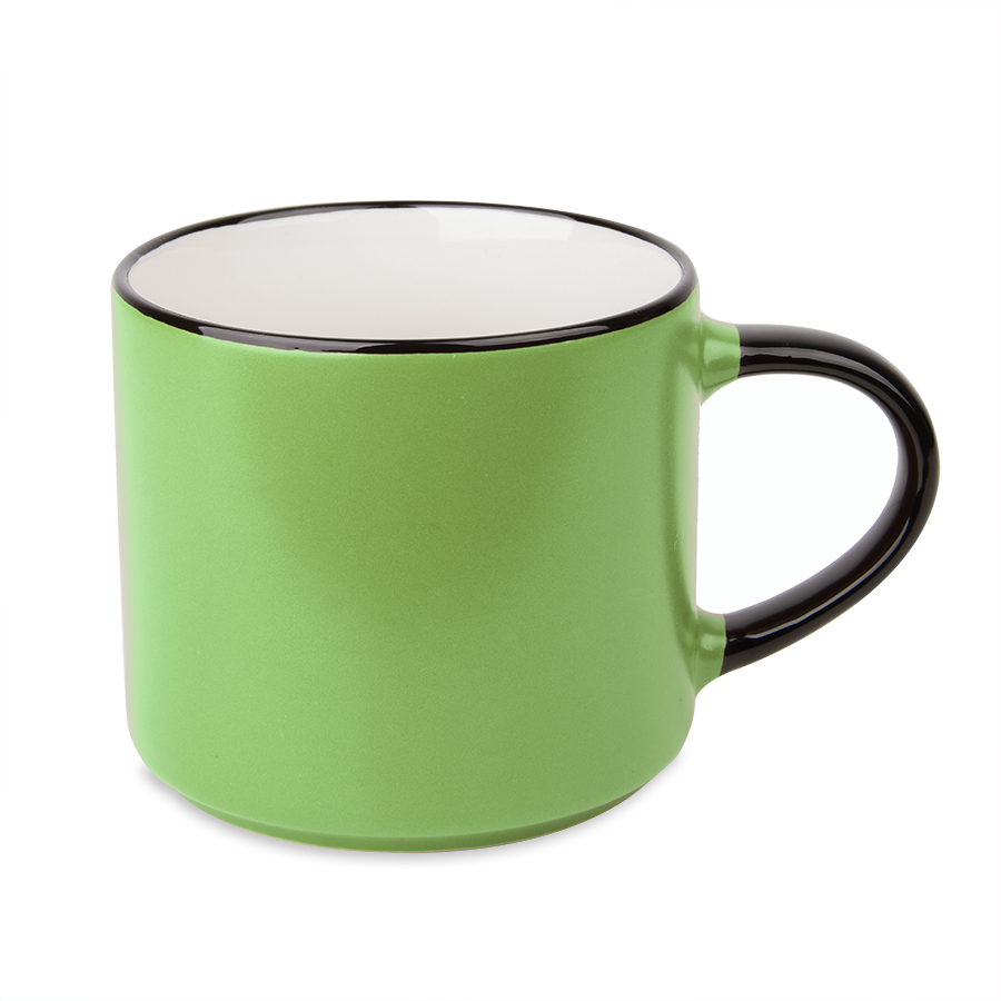 Ёмкая кружка трендовой цилиндрической формы с матовым покрытием.