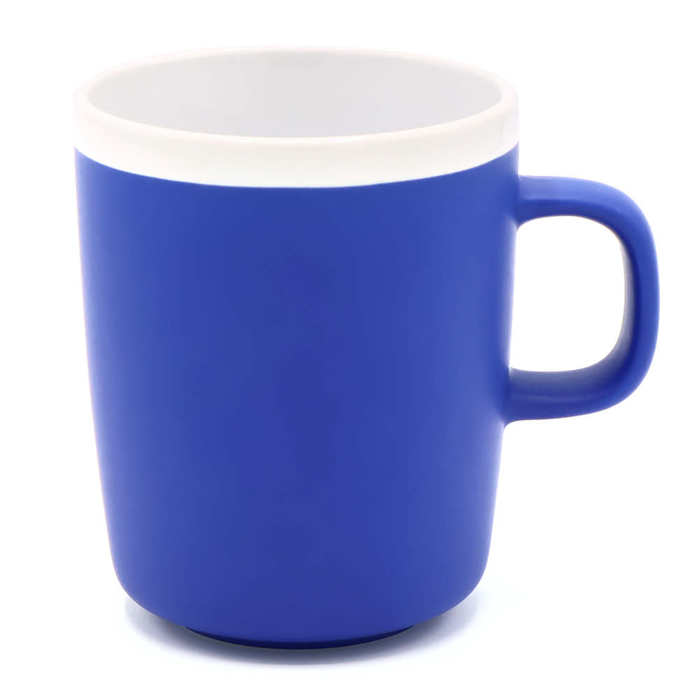 Матовая поверхность с белым глянцевым ободком по краю создаёт контраст и привлекает внимание. Благодаря лаконичной форме и эргономичной ручке кружку удобно держать в руке. Кружка доступна в различных цветах. Подходит для горячих и холодных напитков. Цвет по PANTONE® (максимально приближен): 2726C