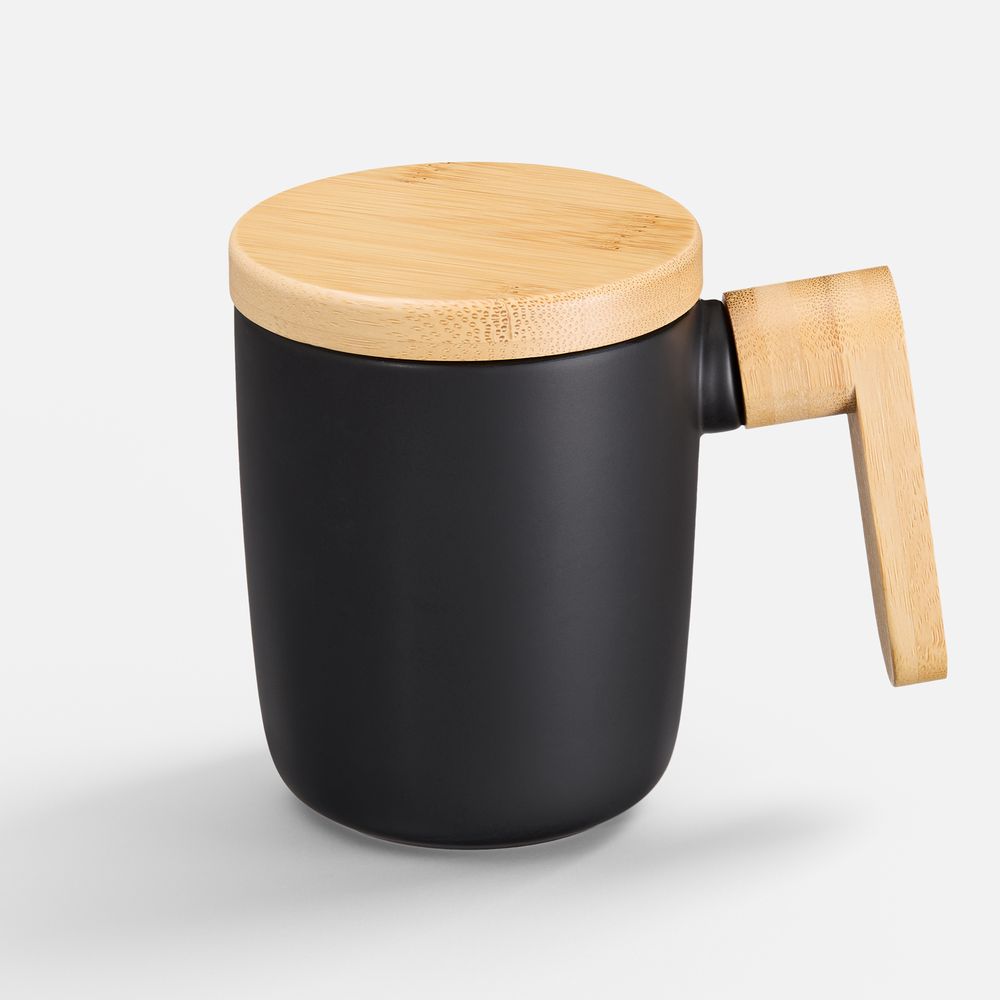 Стильная кружка с крышкой и ручкой из бамбука станет самой любимой на полке! Это идеальный компаньон для продуктивного диалога или умиротворяющего уединения.