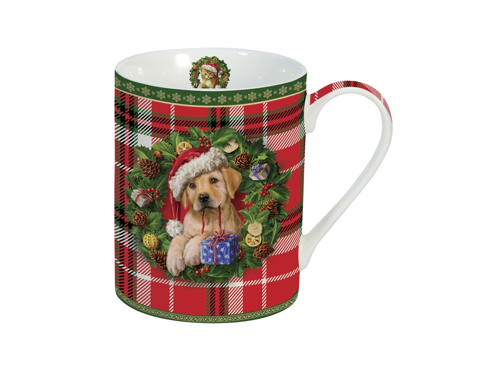 Оригинальная милая кружка с изображением щенка в рождественском колпаке. А внутренняя часть кружки украшена котенком. Цветовая гамма кружки классическая шотландская клетка. Кружка Настоящий друг - трогательный новогодний или рождественский подарок. Кружка изготовлена из фарфора и упакована в подарочную коробку.