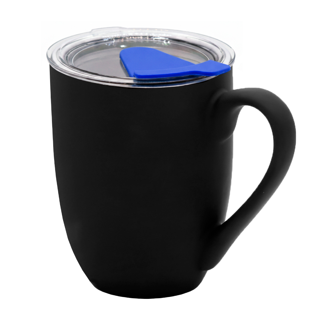 Кружка с крышкой Velvet Duo, софт-тач, чёрная/синяя с логотипом компании - отличный способ заявить вашу корпоративную идентичность.