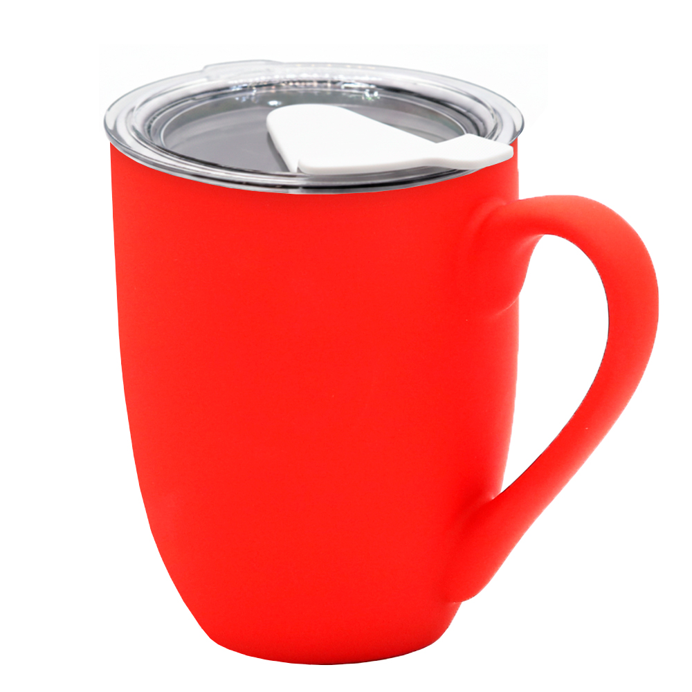 Кружка с крышкой Velvet Duo, софт-тач, красная/белая с логотипом компании - отличный способ заявить вашу корпоративную идентичность.
