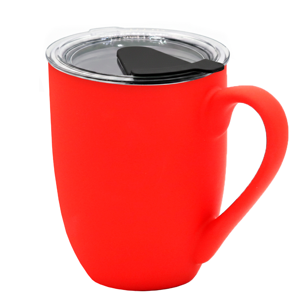 Кружка с крышкой Velvet Duo, софт-тач, красная/чёрная с логотипом компании - отличный способ заявить вашу корпоративную идентичность.
