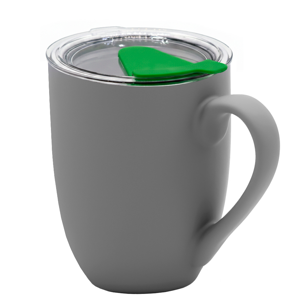 Кружка с крышкой Velvet Duo, софт-тач, тёмно-серая/зелёная с логотипом компании - отличный способ заявить вашу корпоративную идентичность.
