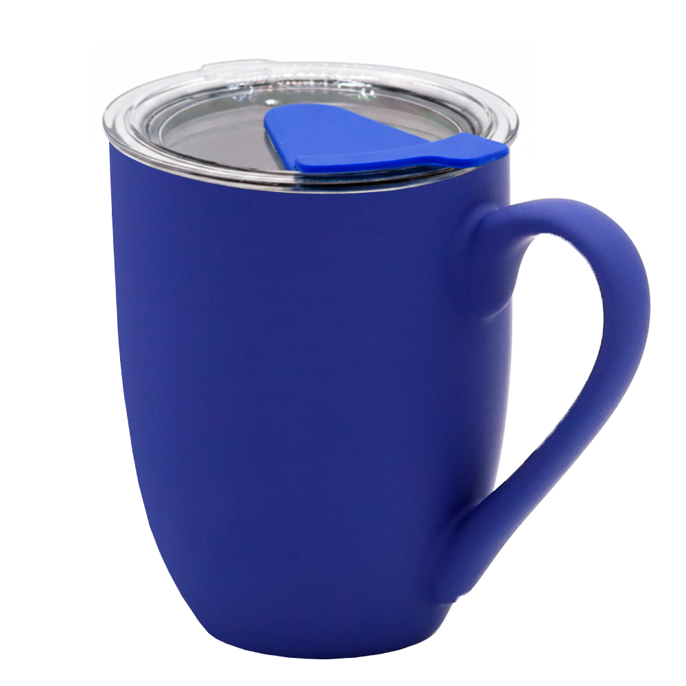 Кружка с крышкой Velvet Duo, софт-тач, тёмно-синяя с логотипом компании - отличный способ заявить вашу корпоративную идентичность.