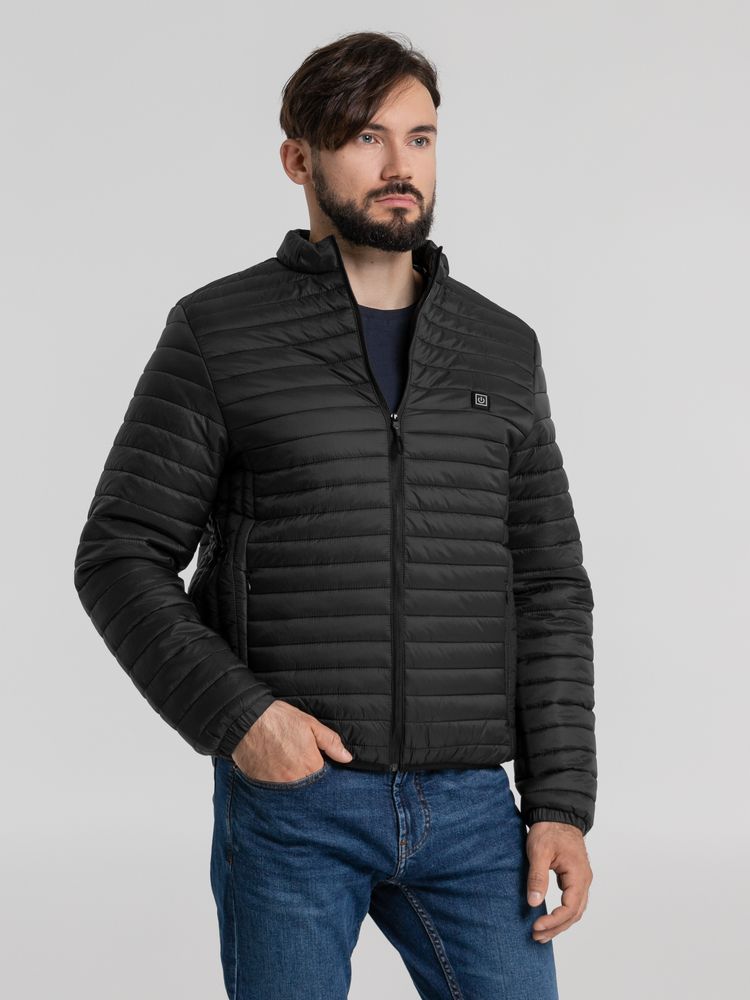 Куртка с подогревом Thermalli Meribell, черная с логотипом компании - отличный способ заявить вашу корпоративную идентичность.