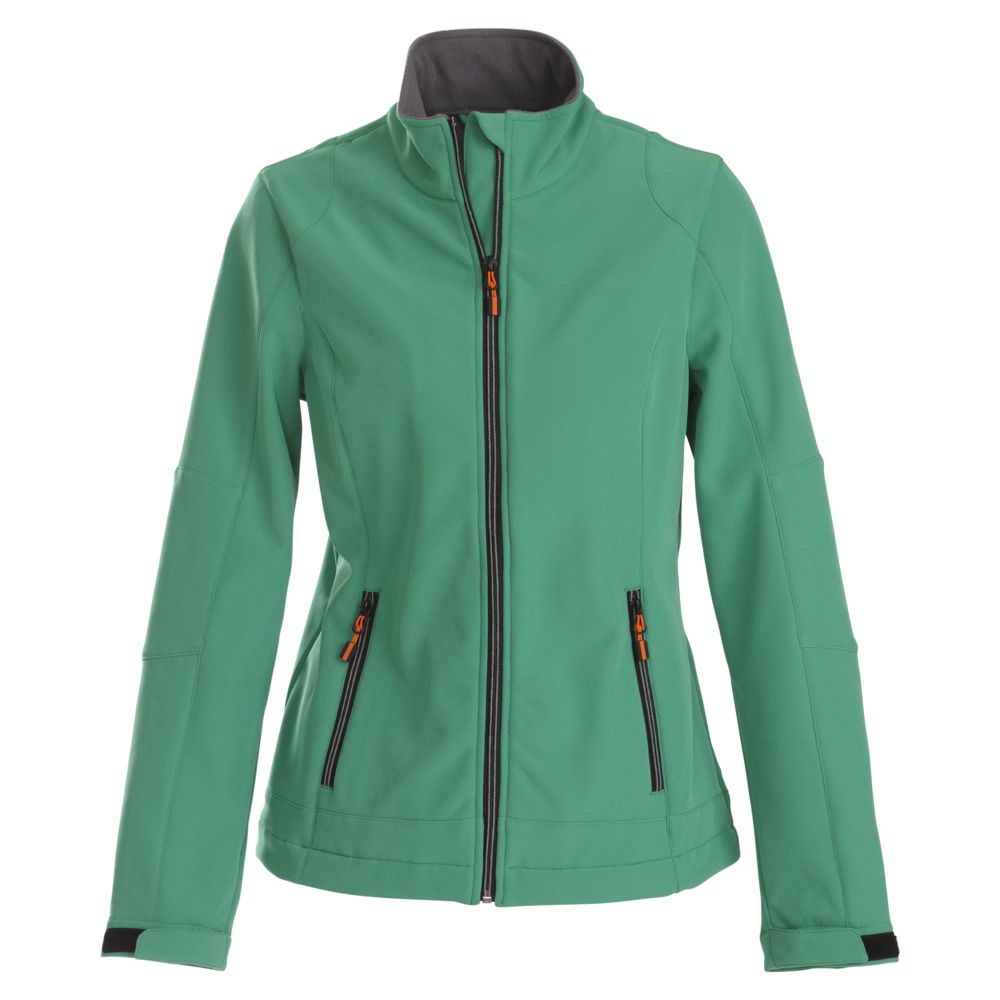 Куртка софтшелл женская Trial Lady зеленая, размер XS с логотипом компании - отличный способ заявить вашу корпоративную идентичность.
