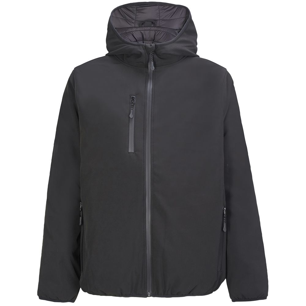 Куртка софтшелл с капюшоном мужская Falcon Men, черная с логотипом компании - отличный способ заявить вашу корпоративную идентичность.