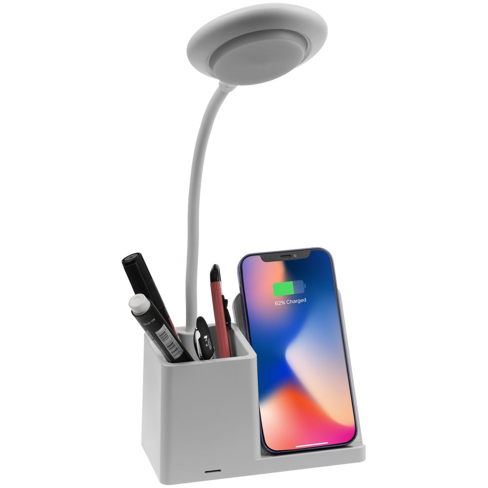 Компания «Эклектика BY» осуществляет нанесение логотипа на сувенирную продукцию: Лампа с органайзером и беспроводной зарядкой writeLight, ver. 2, белая. Арт. 209450