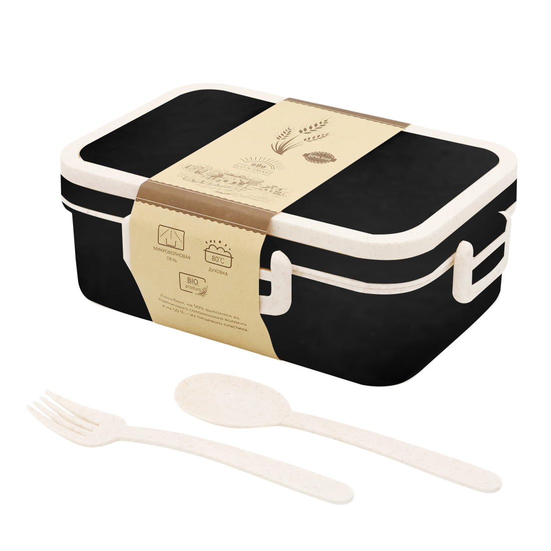 Ланчбокс (контейнер для еды) Inar из пшеничного волокна, чёрный. с логотипом компании - отличный способ заявить вашу корпоративную идентичность.
