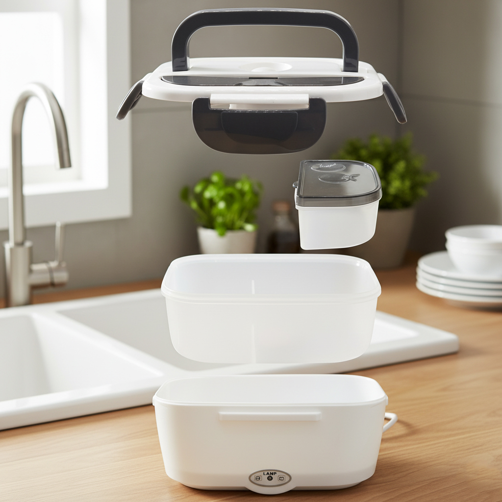 Ланчбокс Yummybox – ваш незаменимый спутник на обеде! Этот инновационный прибор обеспечивает нагрев пищи там, где нет доступа к микроволновой печи. Нагревание происходит по принципу конвекционной (контактной) теплопередачи, то есть - от металлической поверхности внутри ланчбокса. Просто подключите его к электросети, и он сам позаботится о том, чтобы ваша еда была горячей и вкусной. Время нагрева составит 25-30 минут, в зависимости от содержимого контейнера и изначальной температуры продуктов. Не забудьте открыть клапан для выхода пара, который находится на крышке ланчбокса.