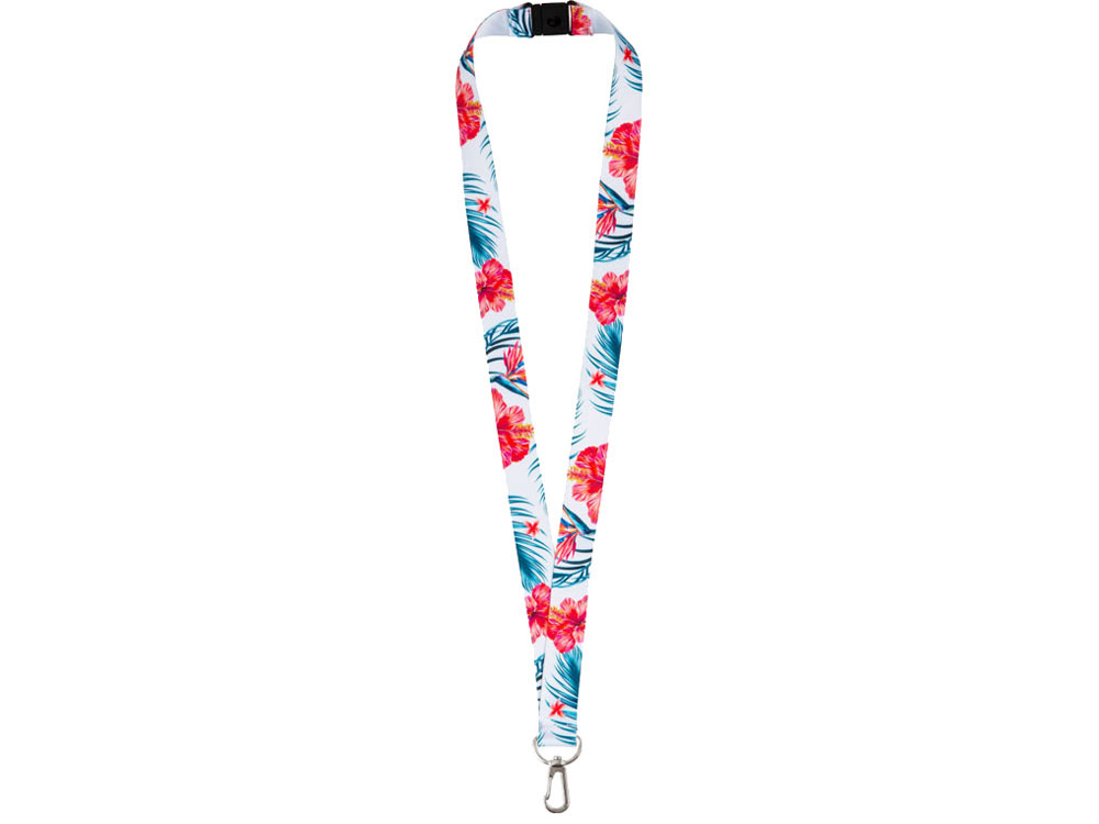 Ланъярд 2 см под сублимацию с карабином и замком обрыва, серебристый с логотипом компании - отличный способ заявить вашу корпоративную идентичность.