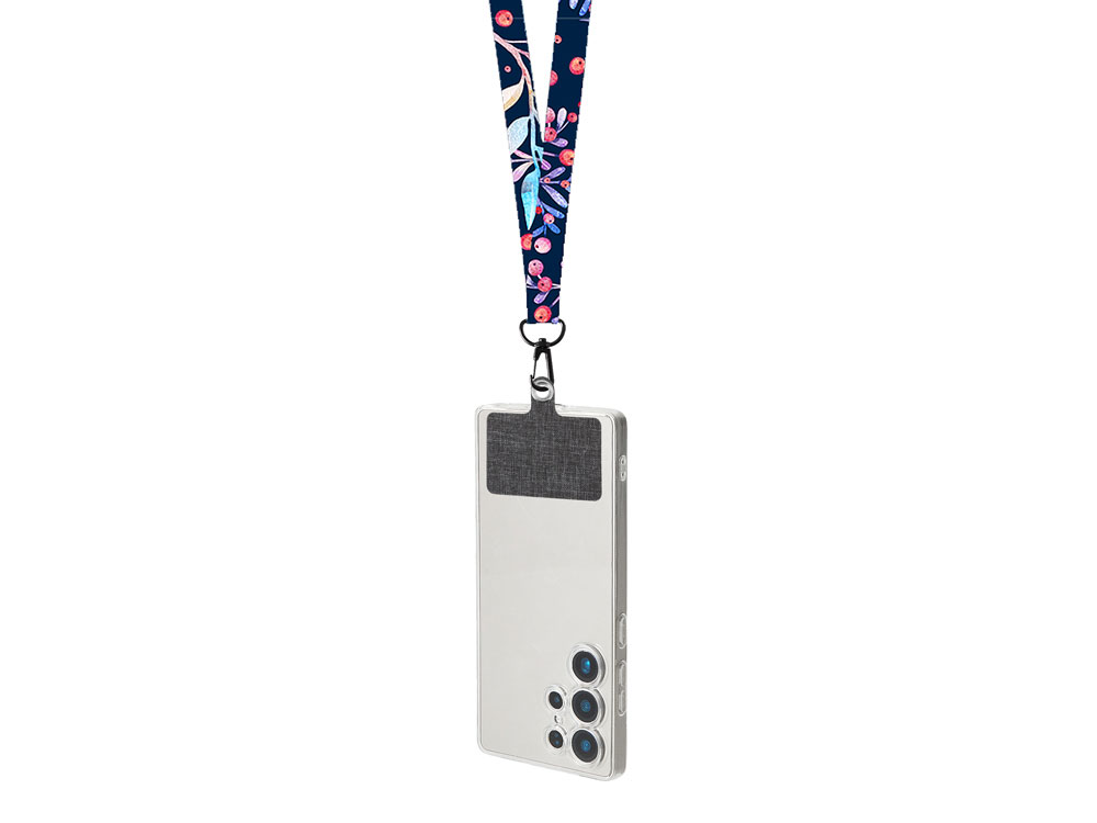 Главная ->Корпоративные подарки и рекламные сувениры на складе -> Промосувениры и подарки -> Аксессуары для бейджей -> Ланъярд 2 см под сублимацию с трендовым карабином, замком обрыва и большим держателем для телефона из ПЭ, черный