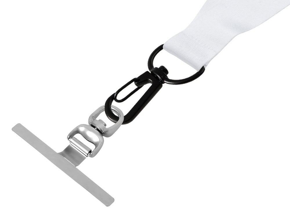 Главная ->Корпоративные подарки и рекламные сувениры на складе -> Промосувениры и подарки -> Аксессуары для бейджей -> Ланъярд 2 см под сублимацию с трендовым карабином, замком обрыва и металлическим держателем для телефона, черный