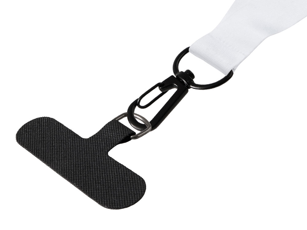 Компания «Эклектика BY» осуществляет нанесение логотипа на сувенирную продукцию: Ланъярд 2 см под сублимацию с трендовым карабином, замком обрыва и узким держателем для телефона из ПЭ, черный. Арт. 447347