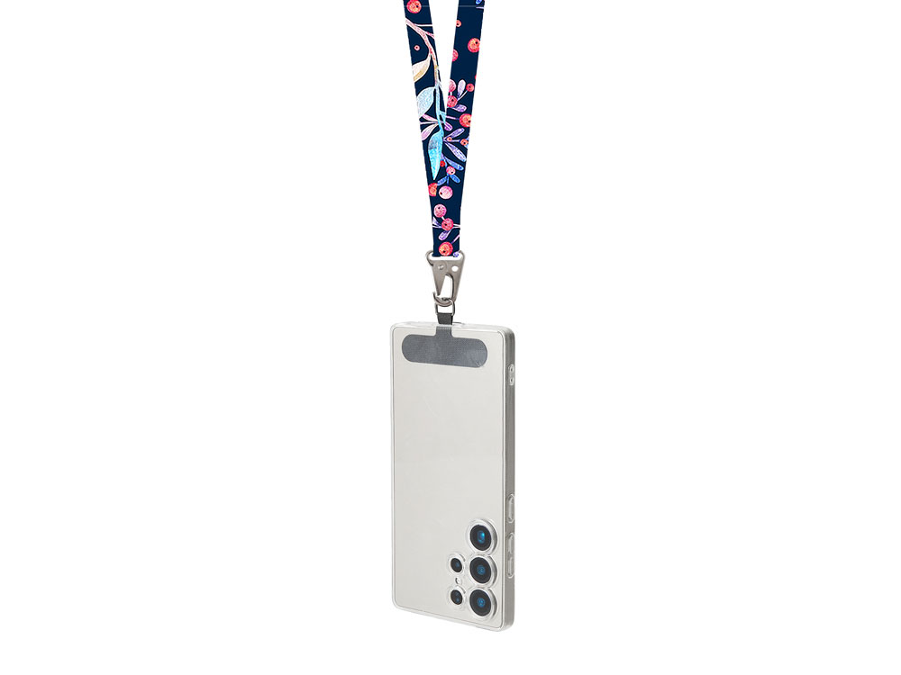 Ланъярд 2,5 см под сублимацию с большим карабином, замком обрыва и узким держателем для телефона из ПЭ