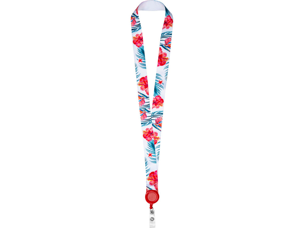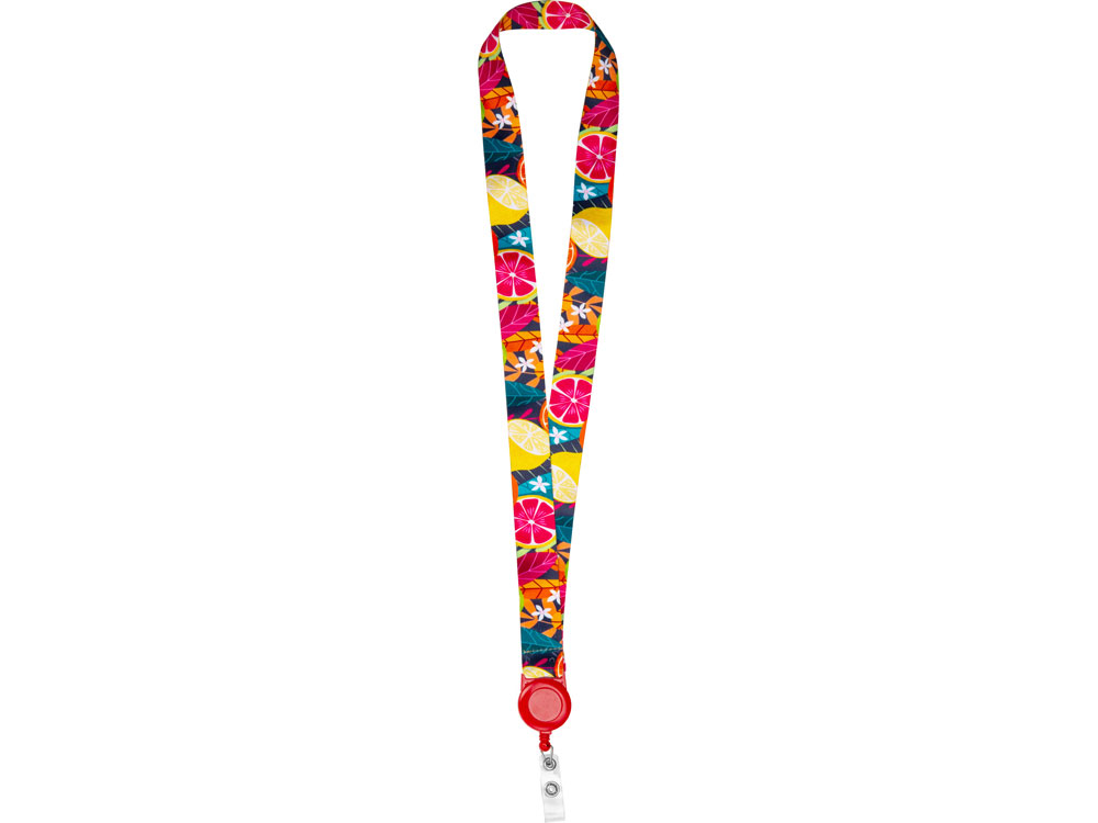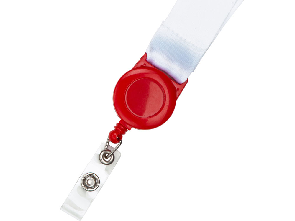 Ланъярд 2,5 см с ретрактором, красный с логотипом компании - отличный способ заявить вашу корпоративную идентичность.