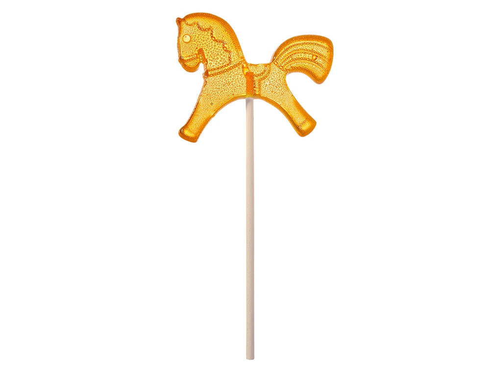 Главная ->Корпоративные подарки и рекламные сувениры на складе -> Вкусные сладкие подарки -> Сладкие подарки -> Леденец Лошадка, желтый со вкусом апельсина, 21 гр.