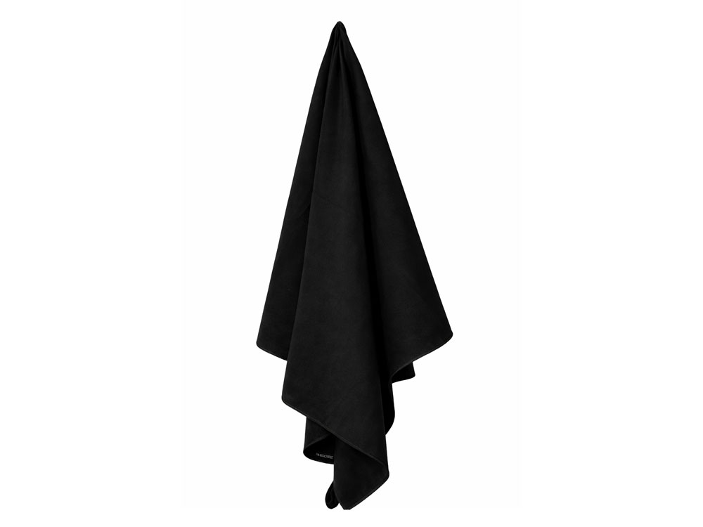 Главная ->Корпоративные подарки и рекламные сувениры на складе -> Активный отдых и спорт -> Пляжные принадлежности -> Легкое полотенце Gulpi из микрофибры RPET с ремешком для складывания, 70*120 см, черный