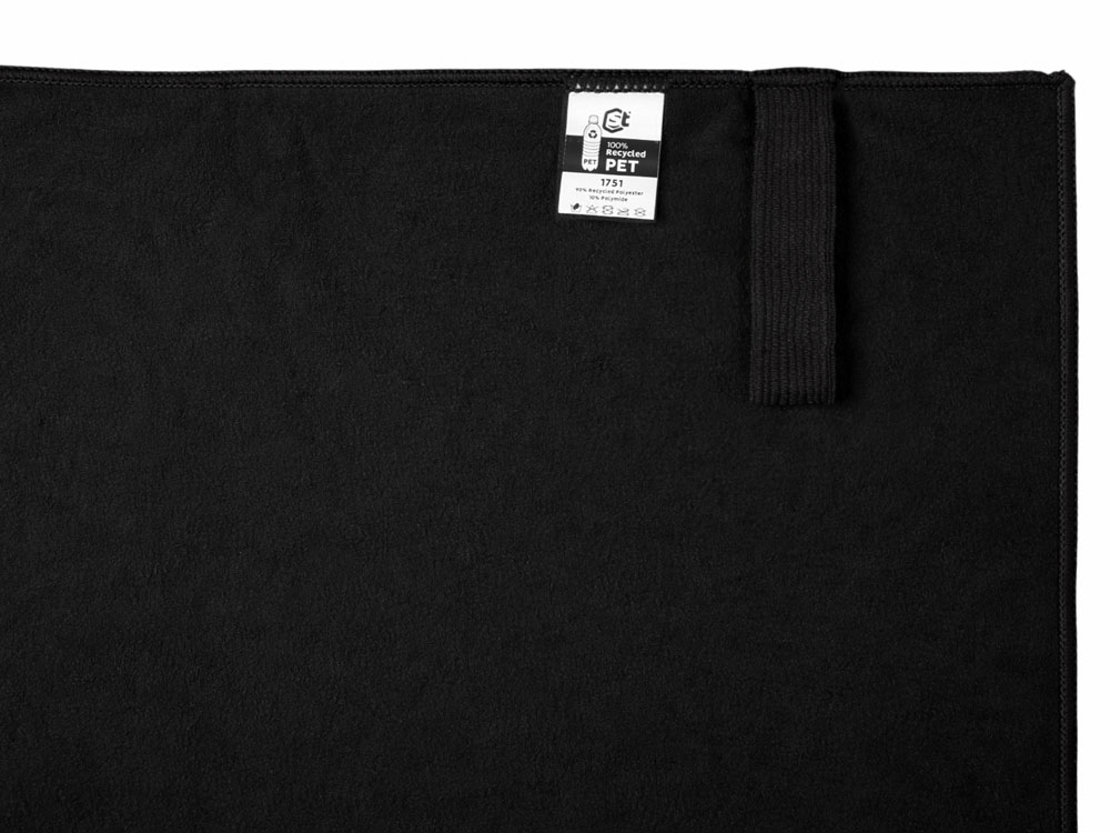 Легкое полотенце Gulpi из микрофибры RPET с ремешком для складывания, 70*120 см, черный с логотипом компании - отличный способ заявить вашу корпоративную идентичность.