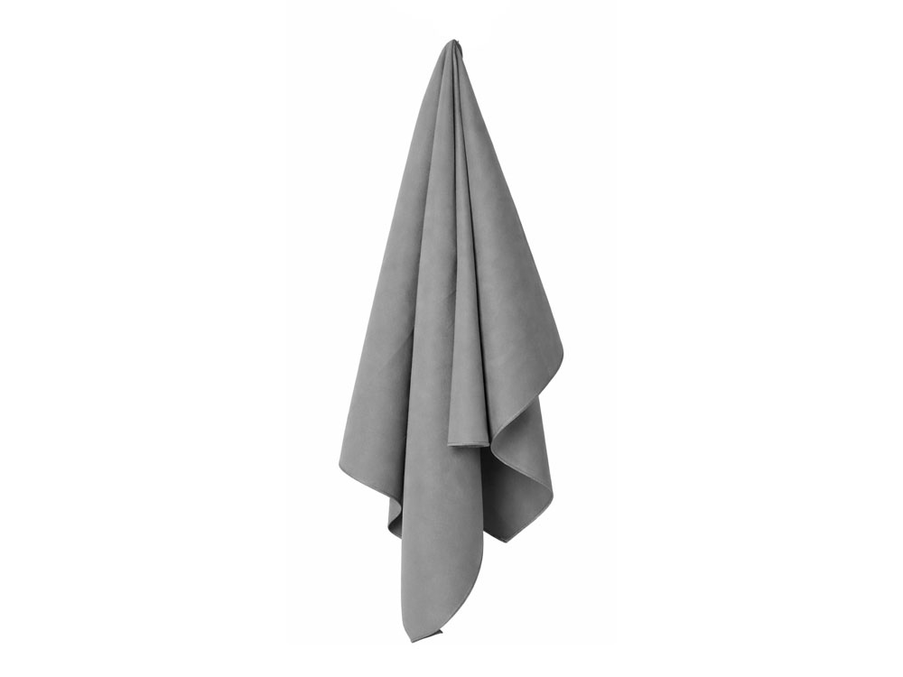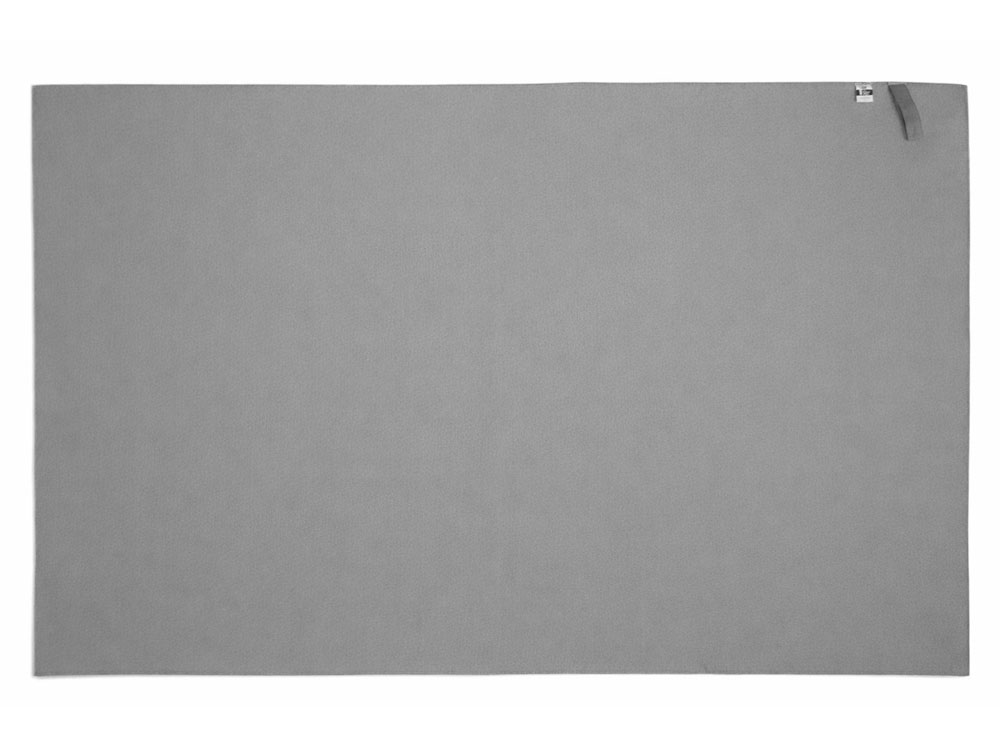 Главная ->Корпоративные подарки и рекламные сувениры на складе -> Активный отдых и спорт -> Пляжные принадлежности -> Легкое полотенце Gulpi из микрофибры RPET с ремешком для складывания, 70*120 см, графит