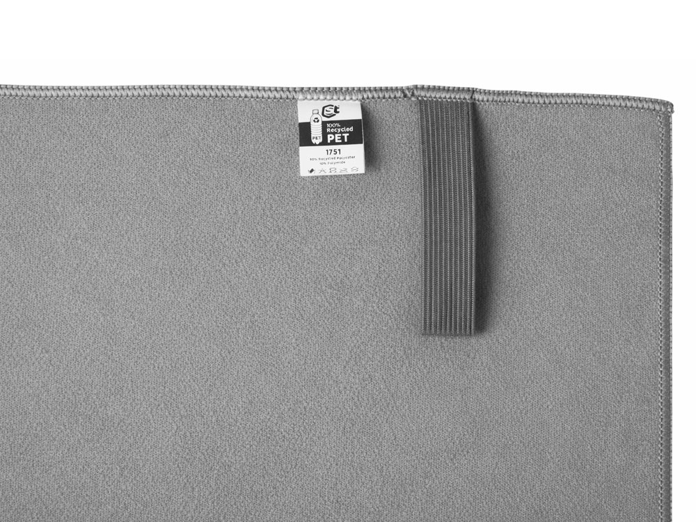 Легкое полотенце из микрофибры, изготовленное из переработанного ПЭТ, с ремешком для складывания и удобной транспортировки.