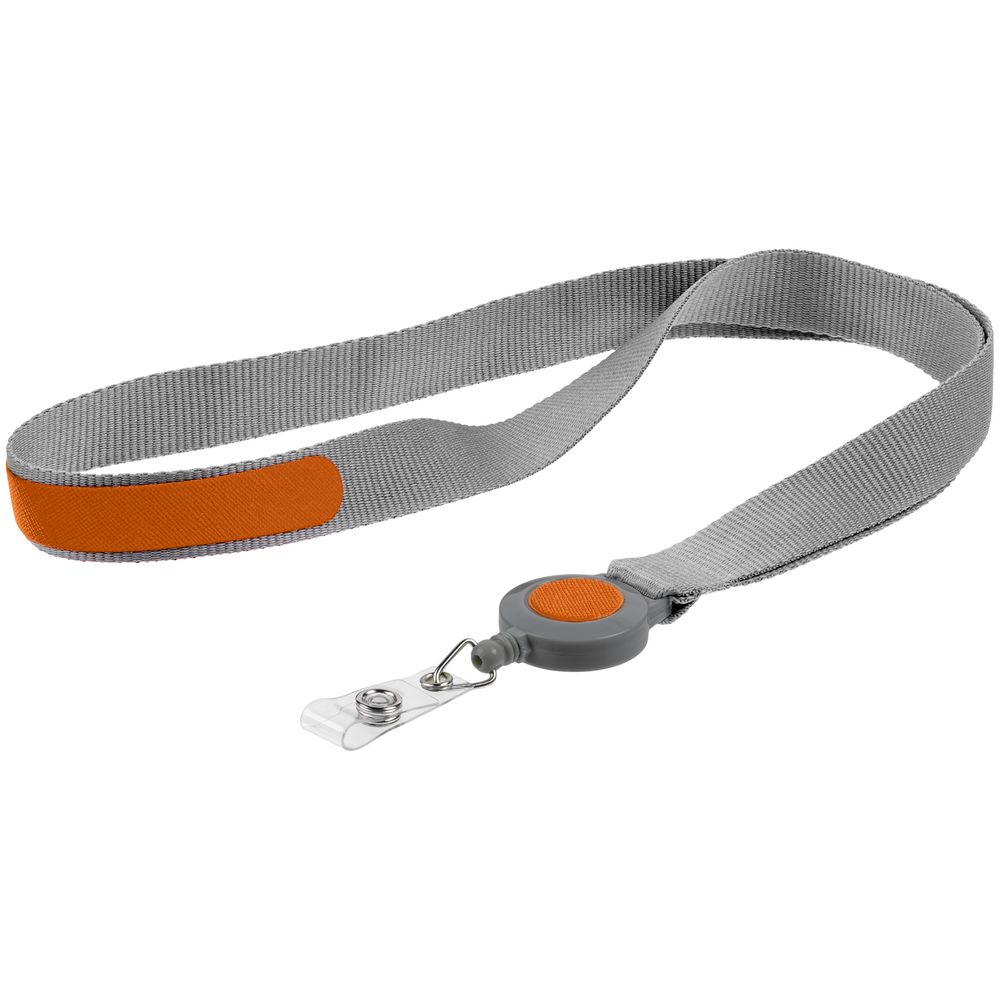 Главная ->Корпоративные подарки и рекламные сувениры на складе -> Промосувениры и подарки -> Аксессуары для бейджей -> Лента для бейджа с ретрактором Devon, серая с оранжевым