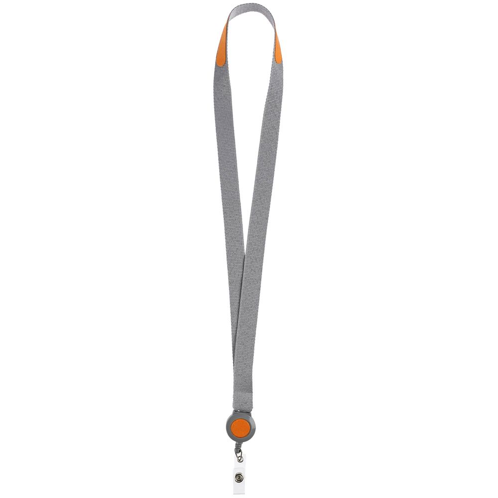 Лента для бейджа с ретрактором Devon, серая с оранжевым с логотипом компании - отличный способ заявить вашу корпоративную идентичность.