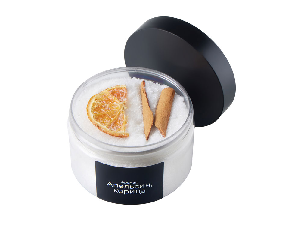 Состав: магниевая соль, эфирное масло апельсина, сушёный апельсин, парфюмерная композиция.