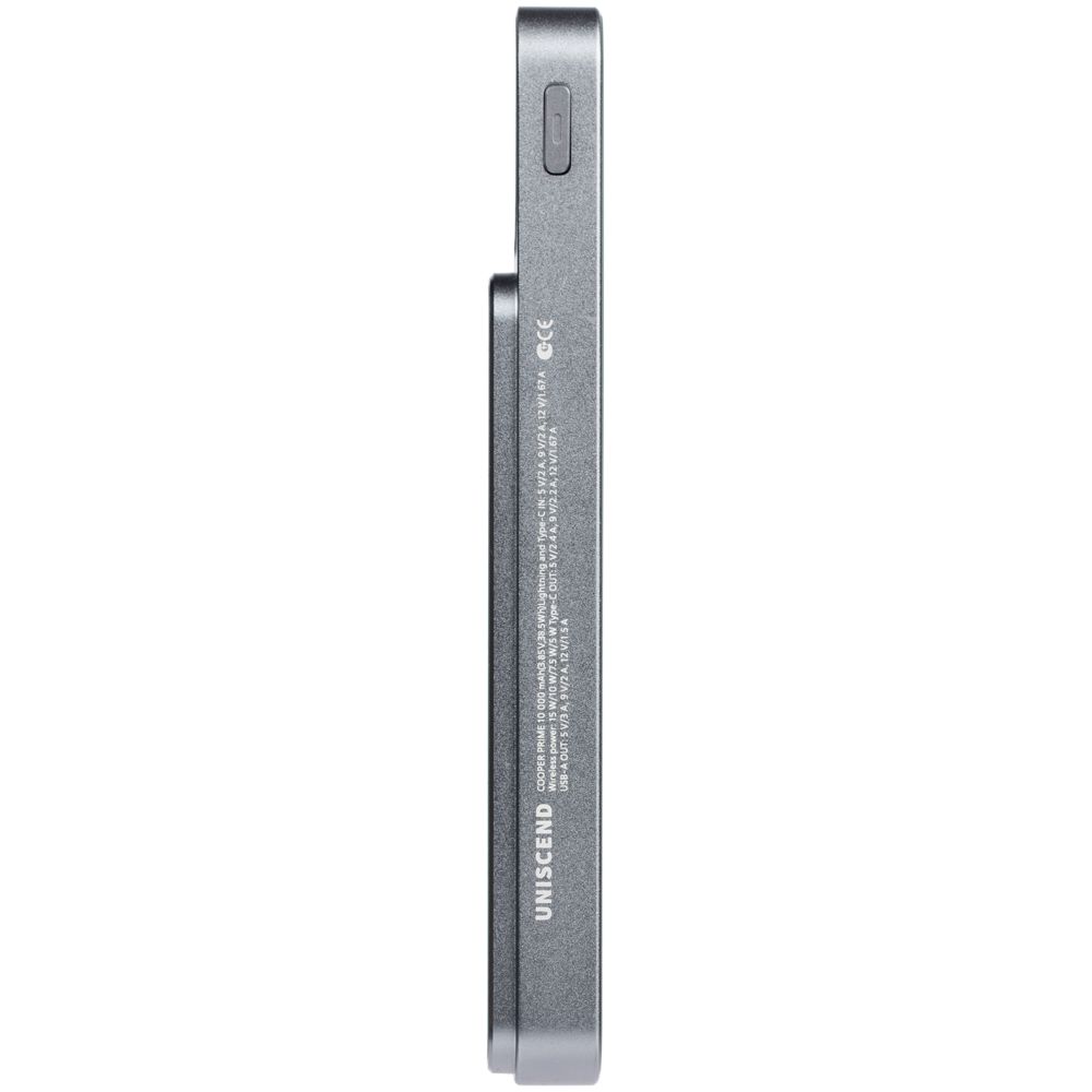 Магнитный беспроводной аккумулятор Cooper Prime 10000 мАч, темно-серый с логотипом компании - отличный способ заявить вашу корпоративную идентичность.