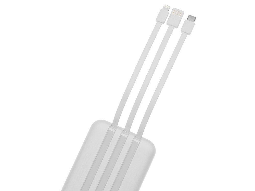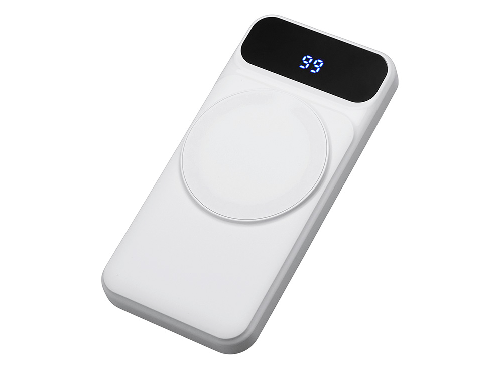 Магнитный беспроводной внешний аккумулятор со встроенными кабелями Мэни,быстаря зарядка, 10000 мАч, белый с логотипом компании - отличный способ заявить вашу корпоративную идентичность.
