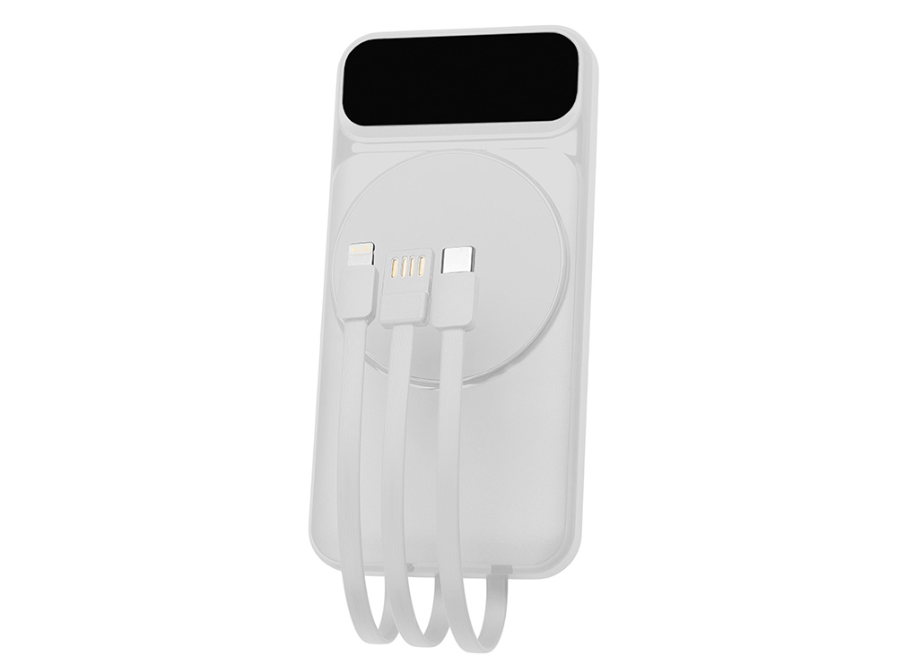 Магнитный беспроводной внешний аккумулятор со встроенными кабелями Мэни,быстаря зарядка, 10000 мАч, белый
