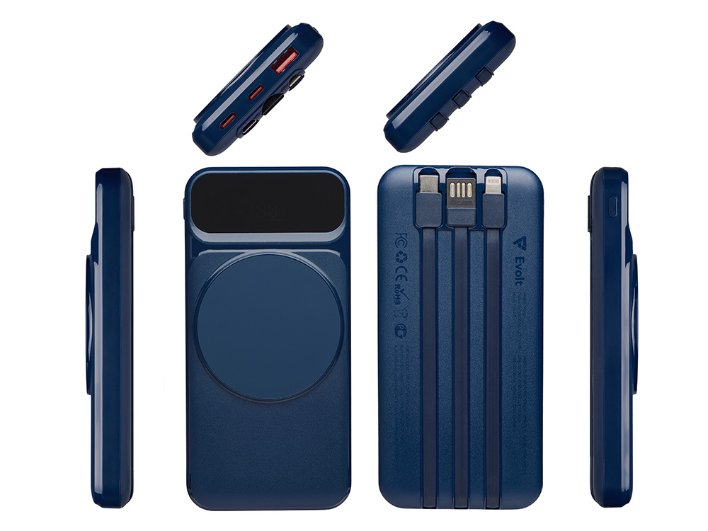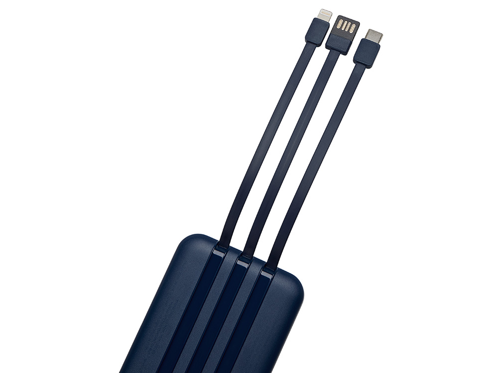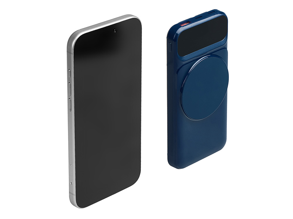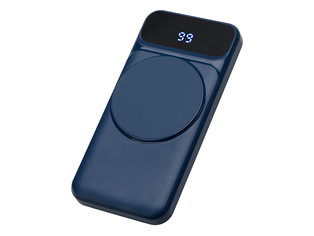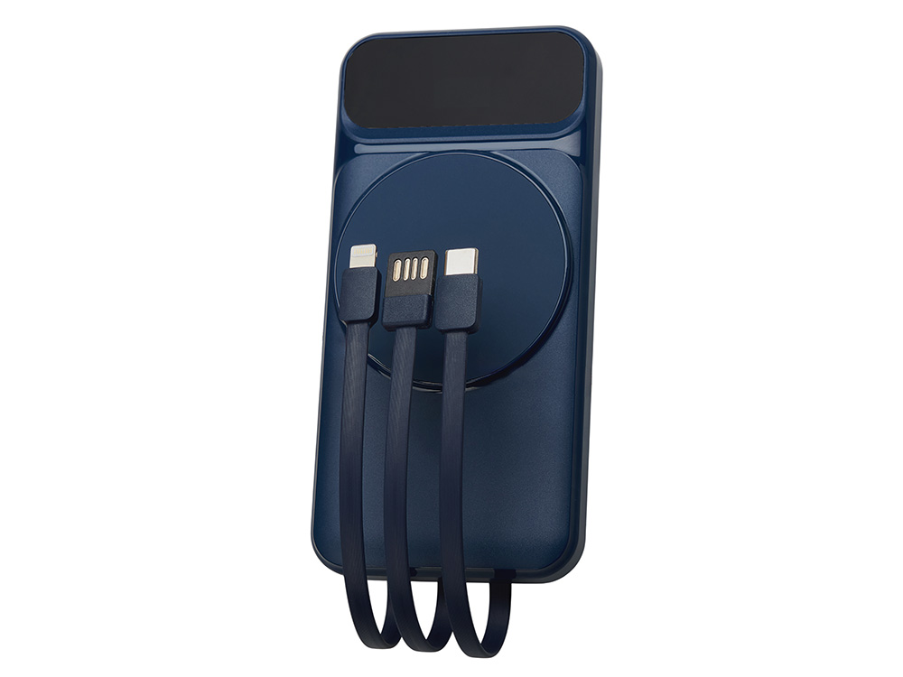 Магнитный беспроводной внешний аккумулятор со встроенными кабелями Мэни,быстаря зарядка, 10000 мАч, тёмно-синий