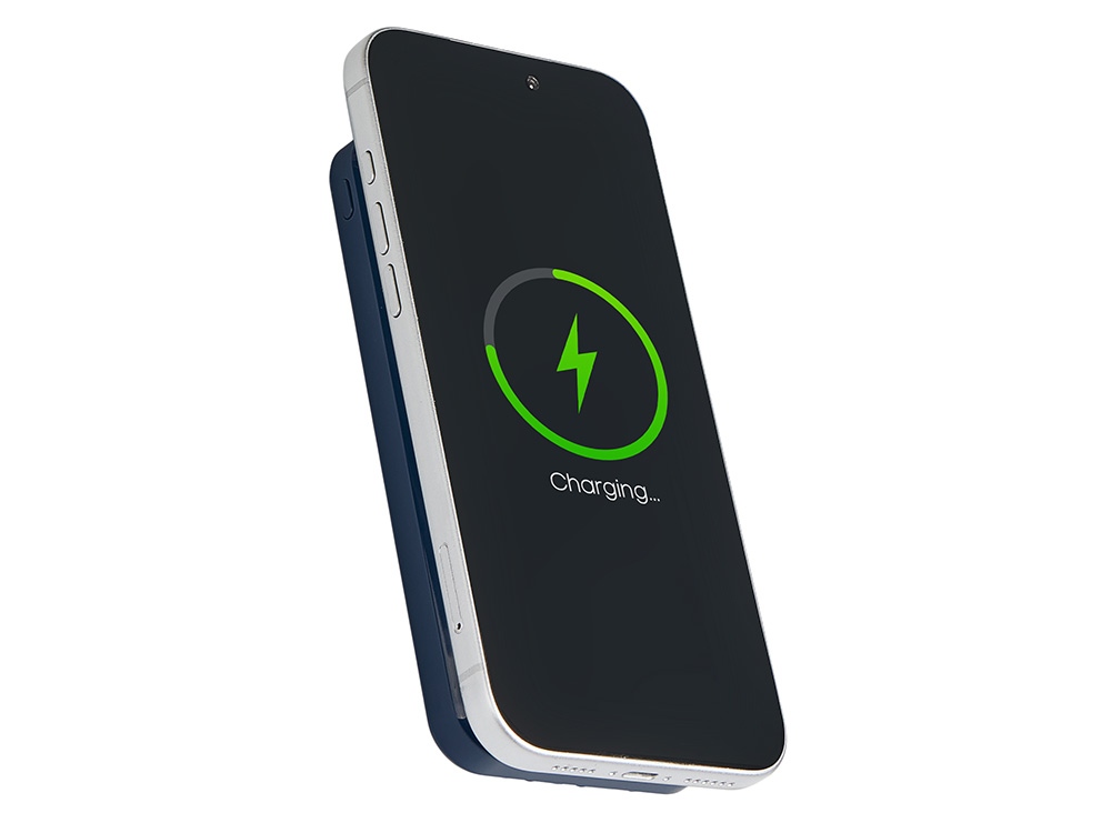 Компания «Эклектика BY» осуществляет нанесение логотипа на сувенирную продукцию: Магнитный беспроводной внешний аккумулятор со встроенными кабелями Мэни,быстаря зарядка, 10000 мАч, тёмно-синий. Арт. 459739