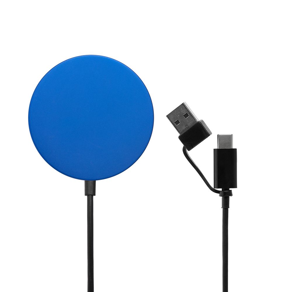 Магнитное зарядное устройство Cooper Rond, 15 Вт, синее с логотипом компании - отличный способ заявить вашу корпоративную идентичность.