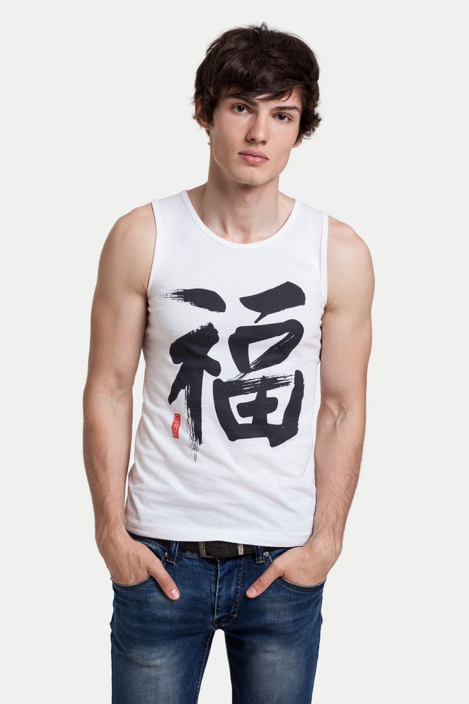 Главная ->Корпоративные подарки и рекламные сувениры на складе -> Promo одежда и аксессуары -> Футболки с принтом -> Майка мужская «Вечные ценности. Счастье», белая