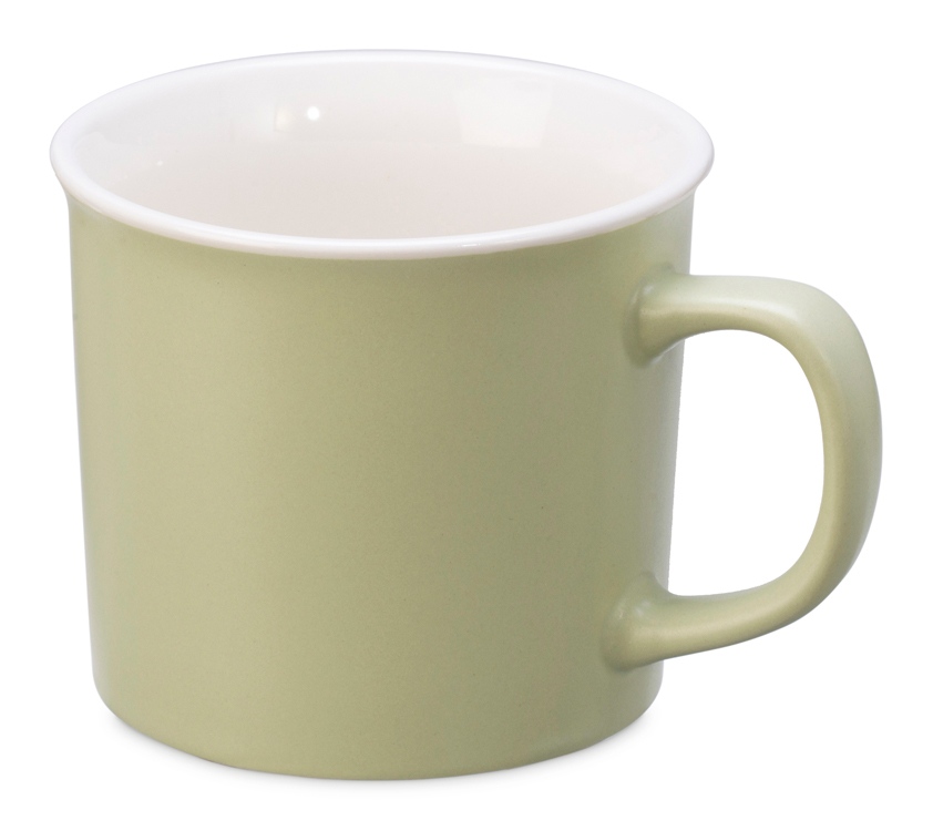 Главная ->Корпоративные подарки и рекламные сувениры на складе -> Кружки c логотипом -> Кружки -> Матовая кружка Nancy 360 мл цветная снаружи, белая внутри, оливковый