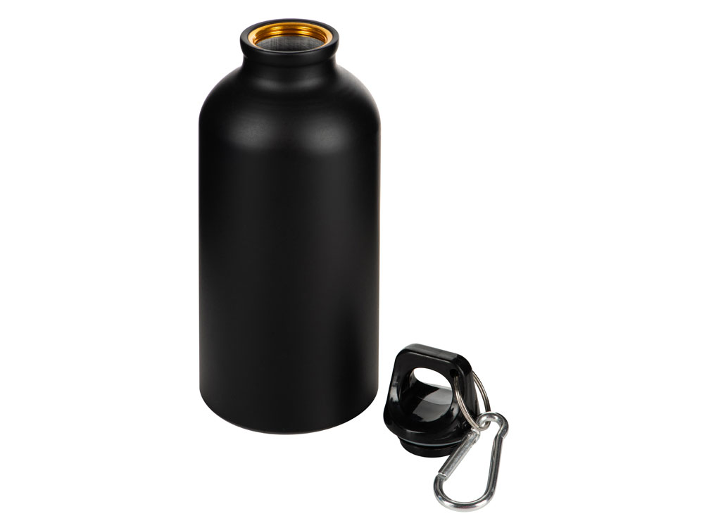 Матовая спортивная бутылка Hip S с карабином и объемом 400 мл, черный с логотипом компании - отличный способ заявить вашу корпоративную идентичность.