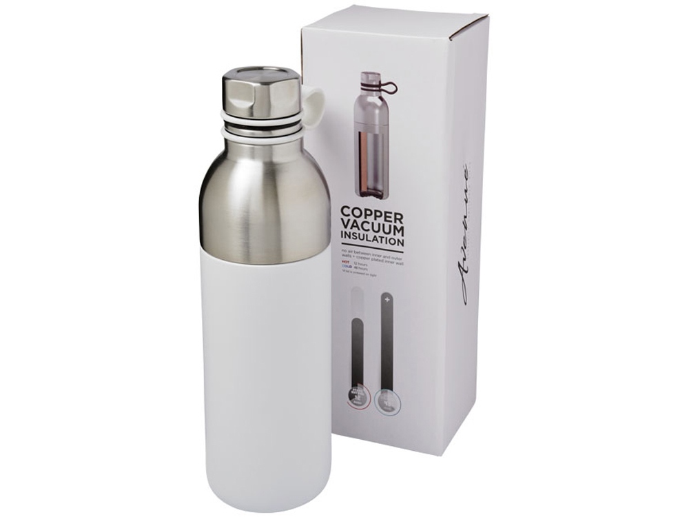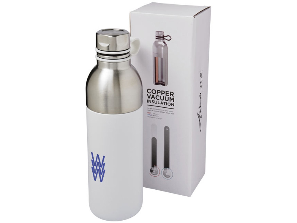 Медная спортивная бутылка с вакуумной изоляцией Koln объемом 590 мл, белый с логотипом компании - отличный способ заявить вашу корпоративную идентичность.