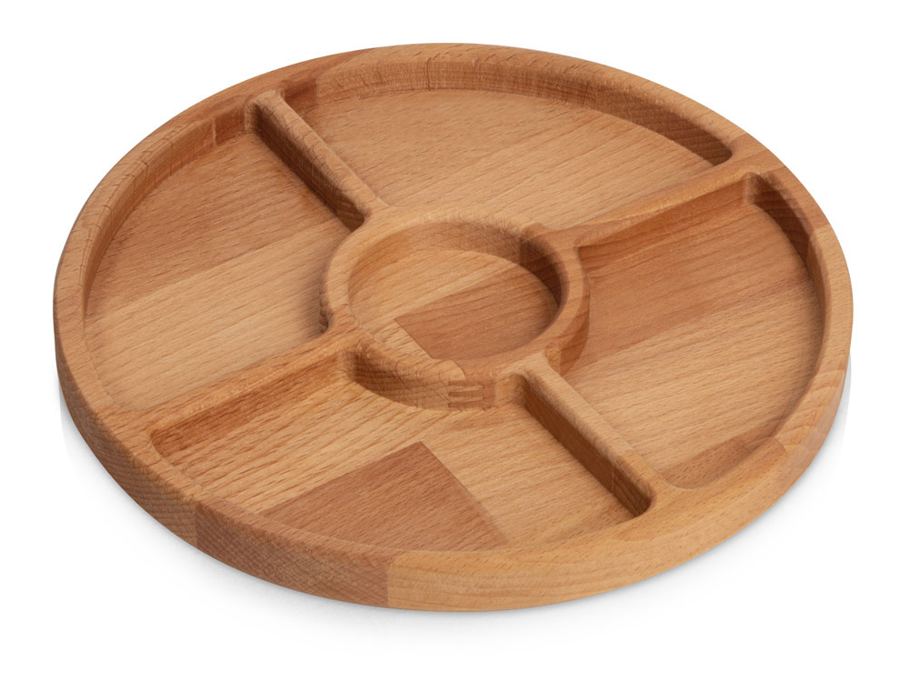 Менажница из натурального бука предназначена для красивой подачи закусок. В центр можно установить соусницу (не входит в комплект).