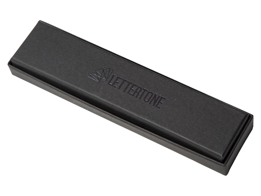 Поставляется ручка в чёрной матовой коробочке с прозрачным логотипом Lettertone на дне.