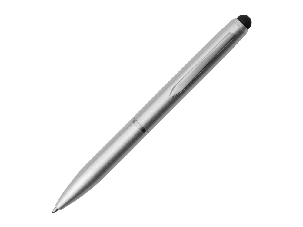 Металлическая шариковая ручка со стилусом Rocky, матовый серебристый с логотипом компании - отличный способ заявить вашу корпоративную идентичность.
