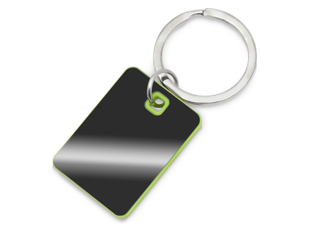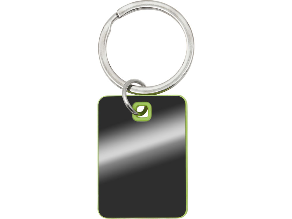 Металлический брелок с пластиковой цветной вставкой SteelPop Rct, серебристый с зеленым яблоком с логотипом компании - отличный способ заявить вашу корпоративную идентичность.